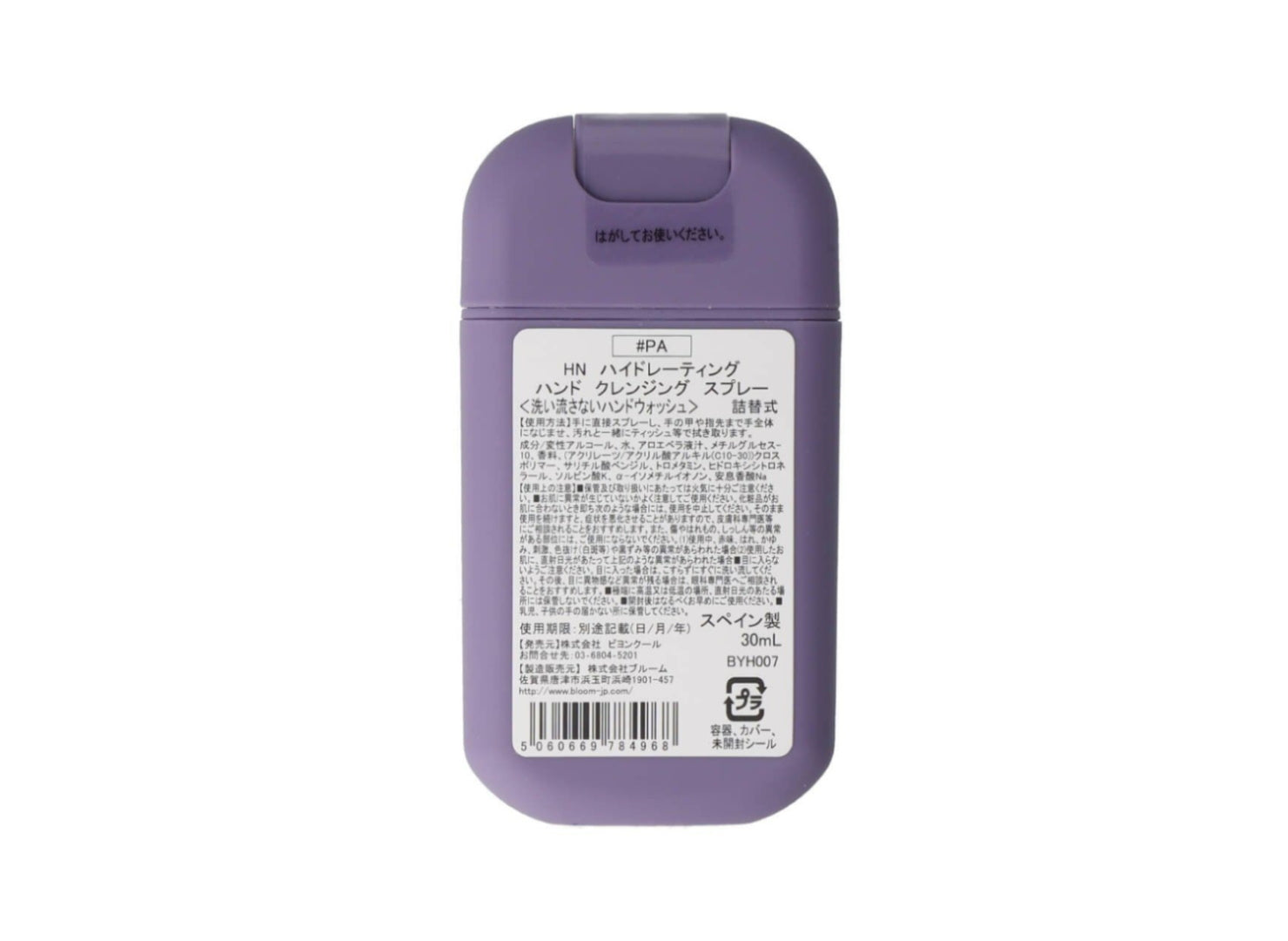 【使用方法】手に直接スプレーし、手の甲や指先まで手全体になじませます。